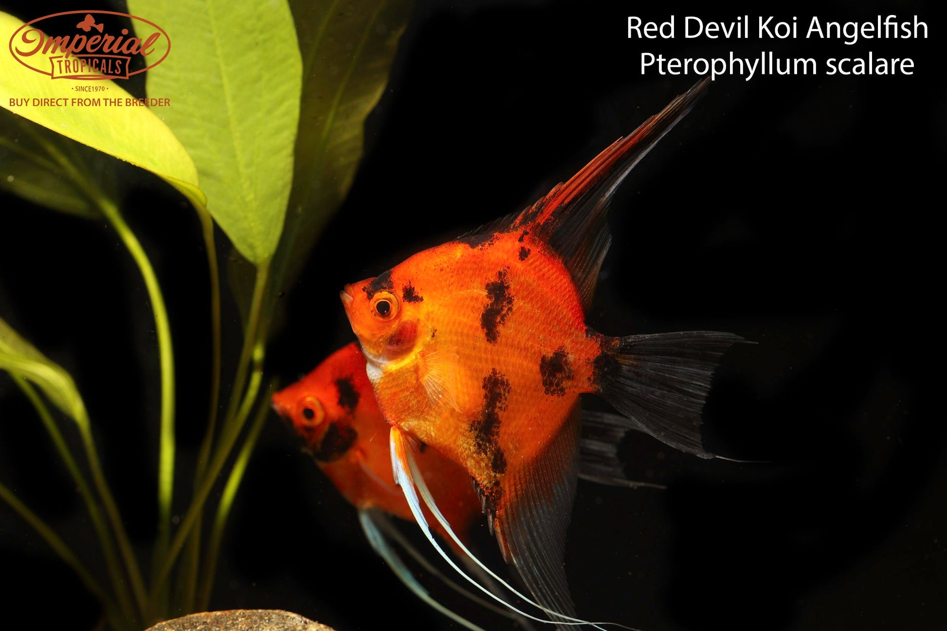 Remarks: The Red Devil Koi Angelfish is a line bred Koi angelfish that has genes to be even more red and orange. The coverage on these fish is very high but patterns may vary. Juveniles may appear more yellow/orange, but as they mature the color will become more red/orange.