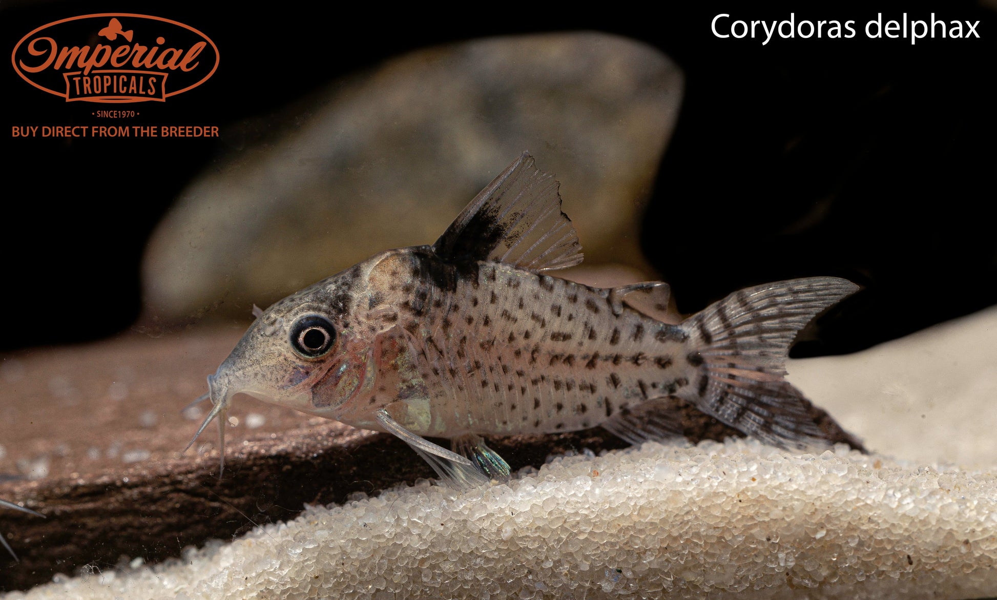 Remarks: Delphax Brochis are a species commonly misconstrued with a few other similar looking Brochis species. They can be identified by the block spots in their caudal fins, more dark spots across the body that tend to fade with age, a dark patch at the anterior end of the dorsal fin, and a fairly elongated snout. While they are mainly know to occur in the upper Orinoco basin in Colombia, there have been reports of specimens being found also in Peru. Delphax Brochis were previously classified as Corydoras delphax, but were reclassified as Brochis delphax upon publication of a phylogenomic analysis in 2024 that reclassified many species in the Corydoradinae subfamily.