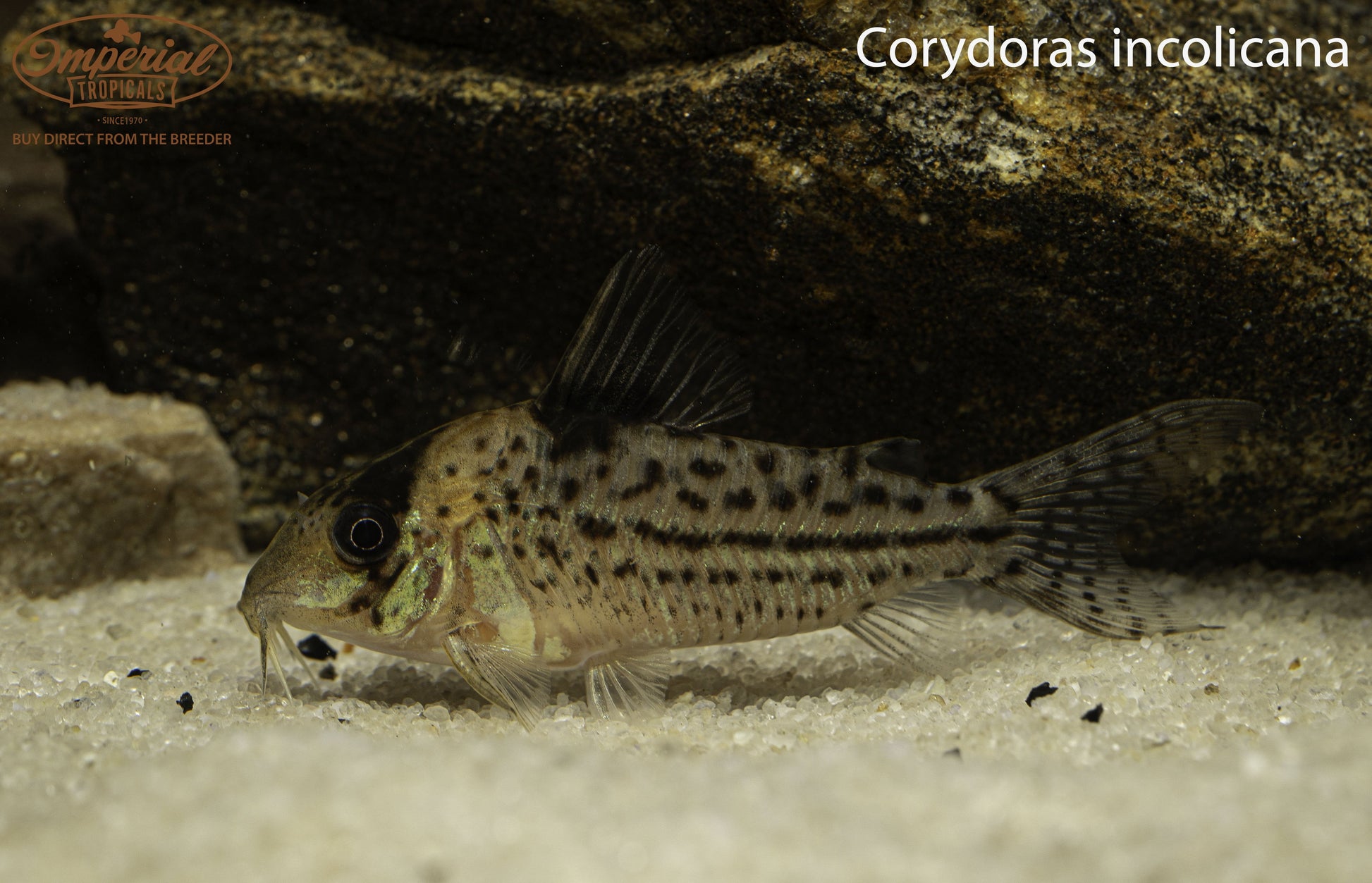 Remarks: Incolicana Brochis are a very uncommon species of Brochis that are known to have variable coloration and pattern, but typically are silver with a black "mask," dorsal fin, and dotted stripes along their flanks. They are found in blackwater habitats so they appreciate dark, warm, acidic water with plenty of botanicals. This species was the first to receive a "C number," C001, which is a code used to identify the type of Corydoradinae until it receives an official species name. It was previously classified as Corydoras incolicana, but was reclassified as Brochis incolicana upon publication of a phylogenomic analysis in 2024 that reclassified many species in the Corydoradinae subfamily.