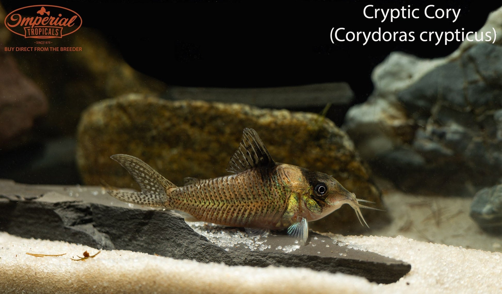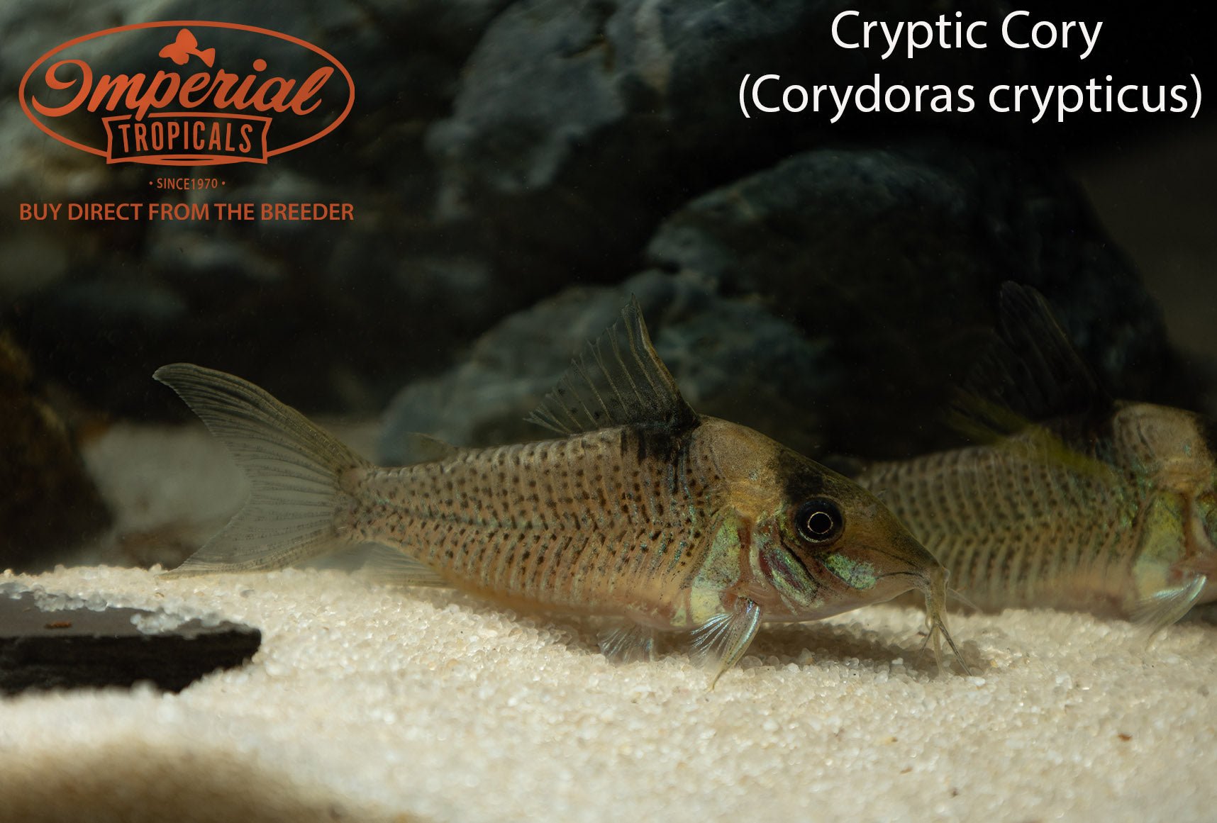 Remarks: The cryptic Brochis got their name due to the fact they are so similar to many other species of Brochis and Corydoras. They are a silver to tan color with a black mask and saddle. Occasionally they display a peppering of black speckles and some green iridescence across their bodies. It was previously classified as Corydoras crypticus, but was reclassified as Brochis crypticus upon publication of a phylogenomic analysis in 2024 that reclassified many species in the Corydoradinae subfamily.