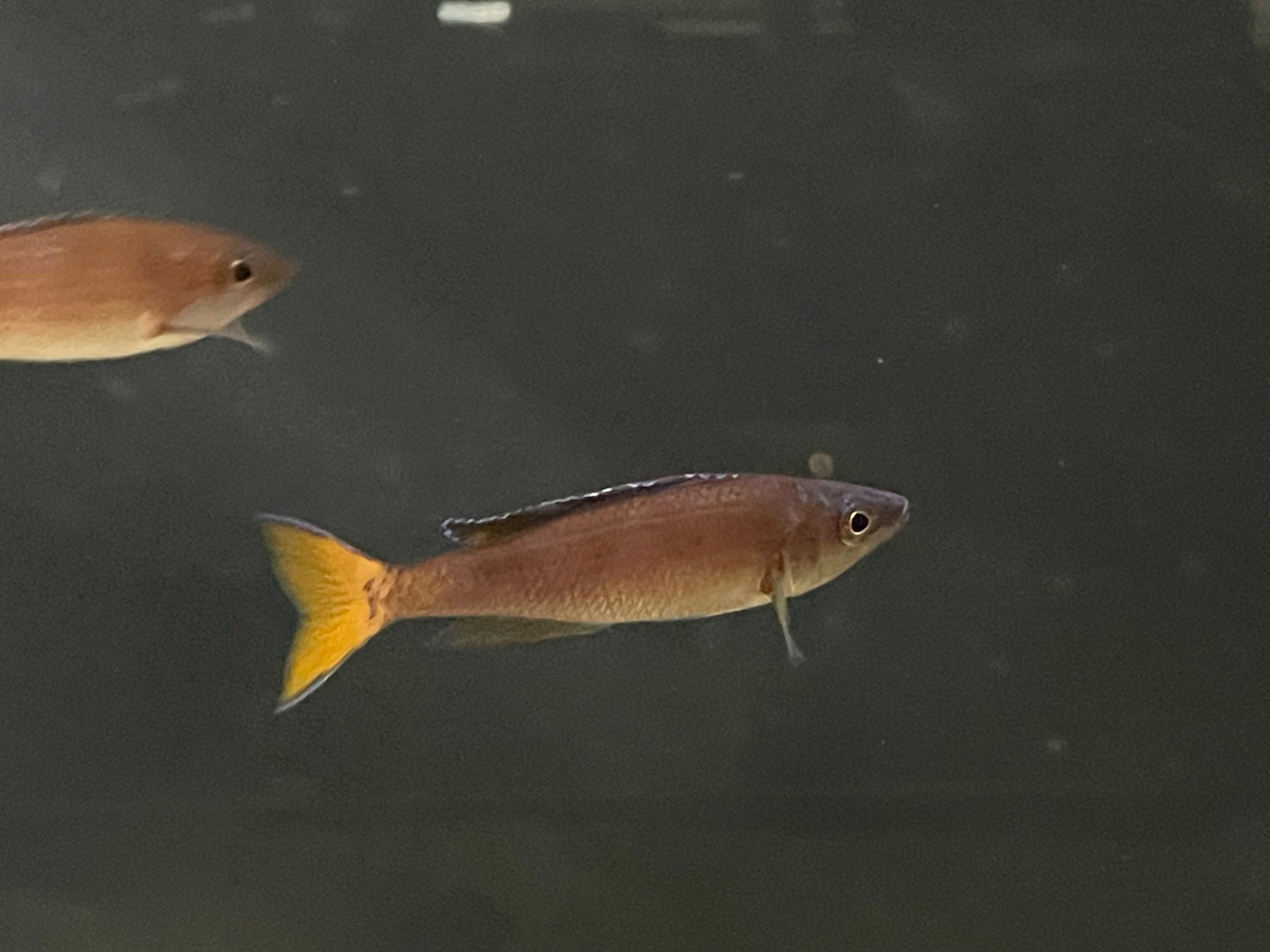 Cyprichromis leptosoma are a mild-mannered cichlid from Lake Tanganyika that exhibit shoaling behaviors higher in the water column. This makes them excellent tankmates for shell- or cave-dwelling cichlids, which rarely venture higher into open water. They act as a relaxing agent for other species as well, much like tetras do with dwarf cichlids - if the Cyprichromis are swimming in the open, it must be "safe."