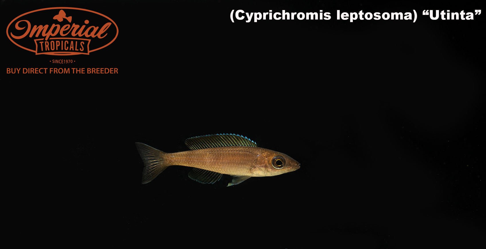Remarks: Cyprichromis leptosoma "Utinta" are a locality of Cyprichromis leptosoma with some truly beautiful coloration. Mature males have a dark colored body, a yellow tail, and inky black dorsal and anal fins. When not displaying or when immature, they tend to be more of a silver color like the females.
