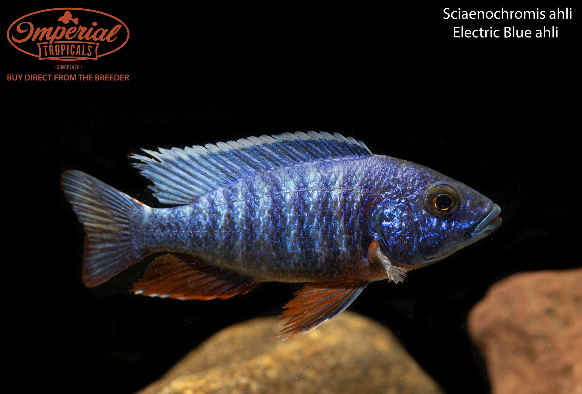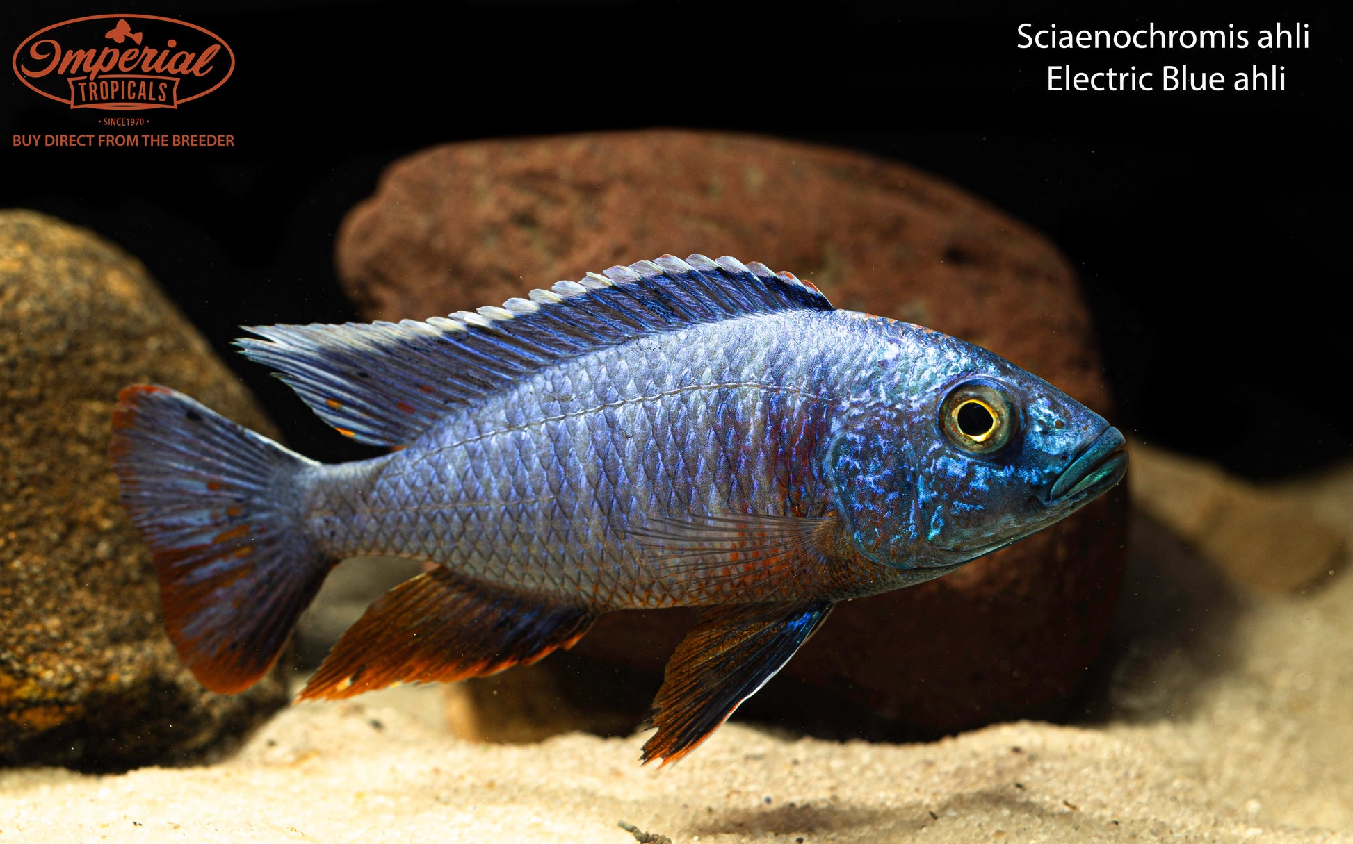 Remarks: These fish are commonly sold as Sciaenochromis ahli, but the fish being imported are S. fryeri. They are found throughout the lake in rocky habitats and feed on small mbuna. The males currently for sale are throw-offs from our OB Ahli line and may exhibit slight differences in appearance.