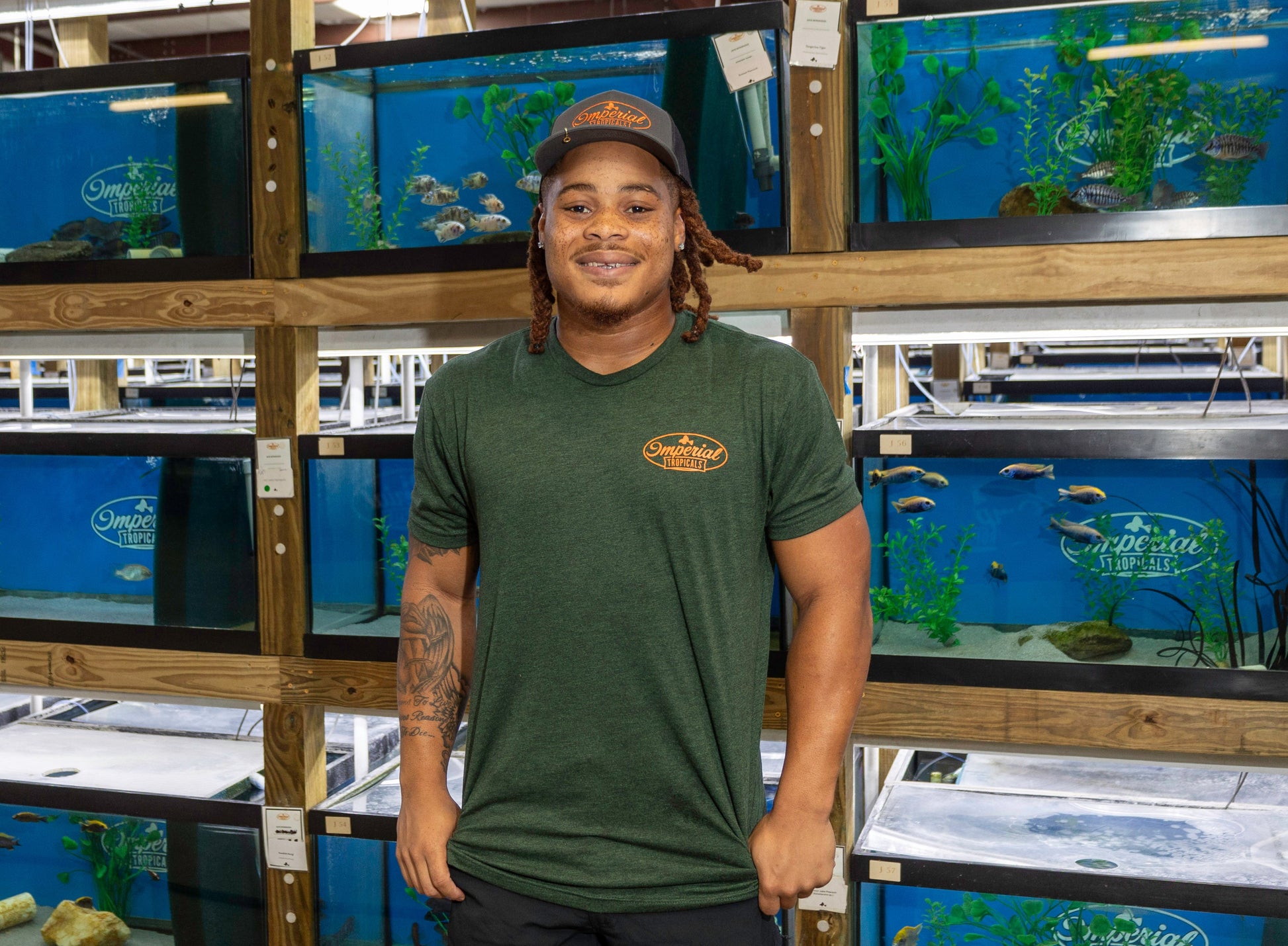 Durable Jerzees Dri-Power Active T-Shirts perfect for fish room work or to show off that you buy from Imperial Tropicals. Small logo on the top left corner on the front left and large logo with phrase on the back.