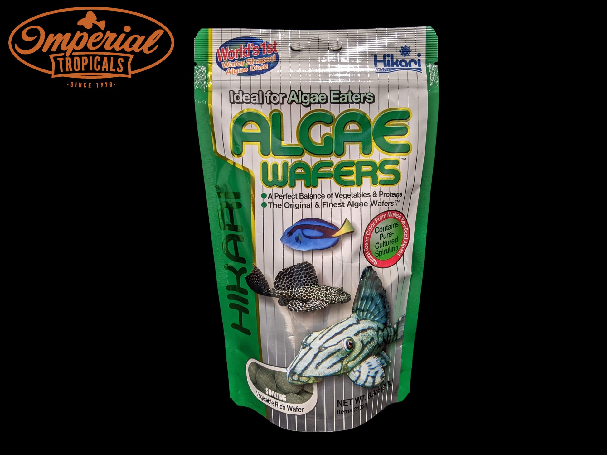 Hikari Tropical Algae Wafers were specifically developed for the hard to feed plecostomus and other algae eating bottom feeders. Accept no substitute, request the first and finest disc shaped diet for your herbivorous fish!