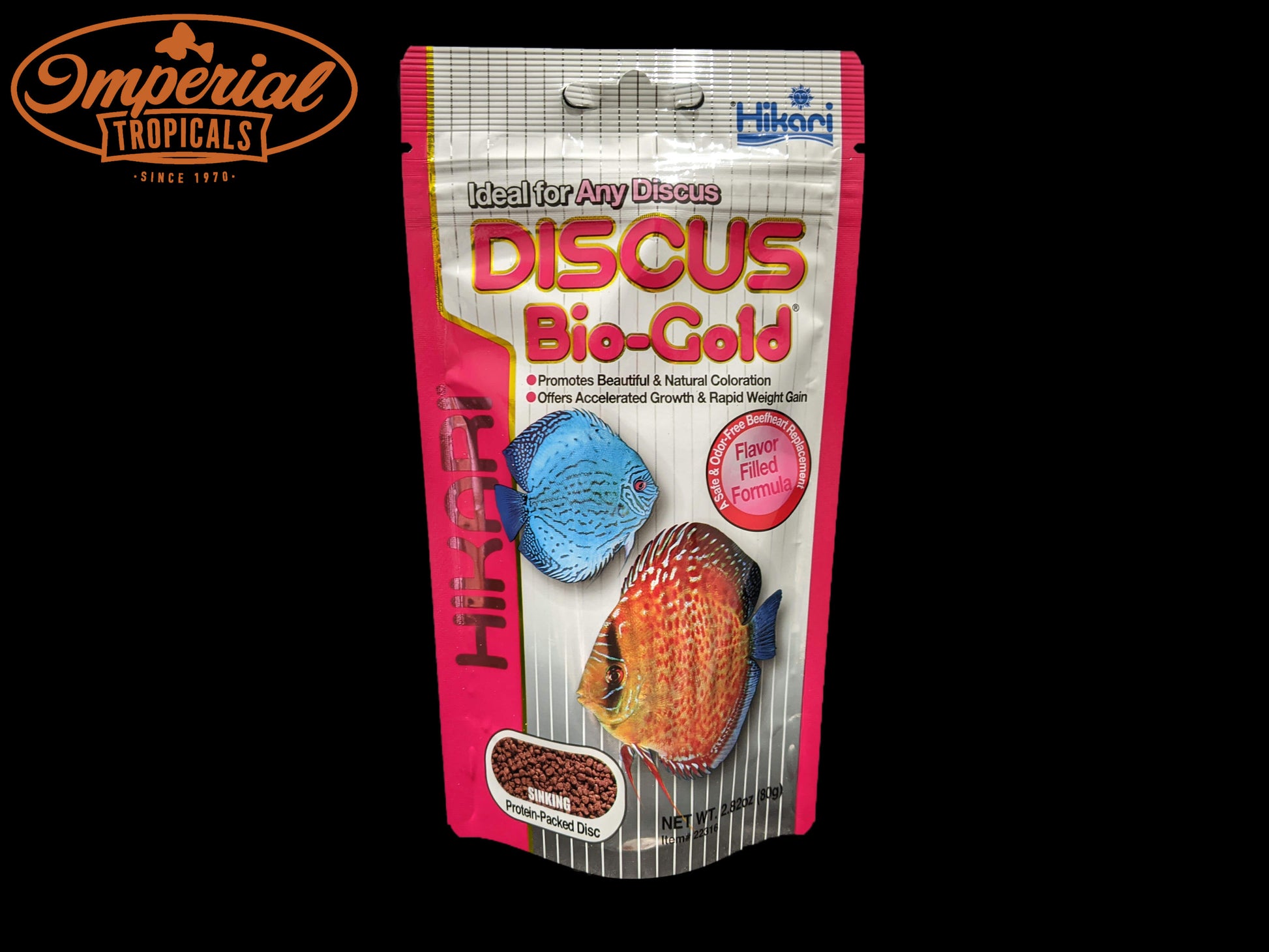 Scientifically formulated for discus, taking into account their need for higher protein levels. Additionally, discus are known to be finicky eaters by nature. The Discus Bio-Gold® granule has been manufactured to reduce the mess caused by a discus' normal eating routine and formulated with lots of natural flavor attractants to offer maximum acceptance. This diet has been used as an exclusive food for raising and breeding wild caught discus.