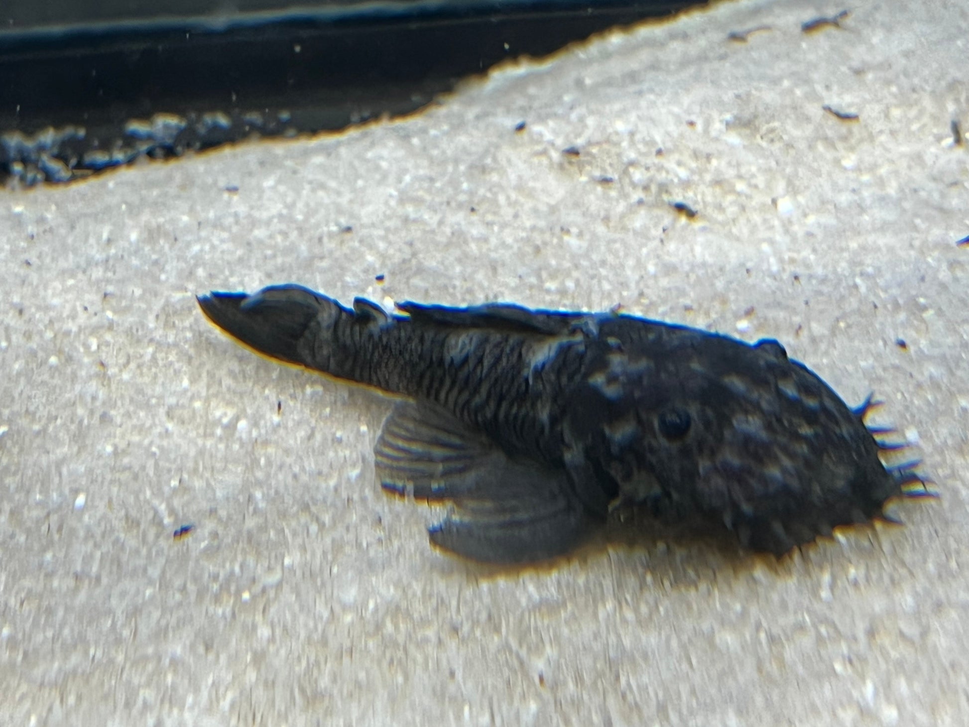 Remarks: L034 Medusa Plecos (Ancistrus ranunculus) are members of the Bushynose family and grow the same bristles as common Bushynose. Their bodies are solid navy-blue or black and much more stubby than common Bushynose. They are shorter and fatter especially when viewed from above.