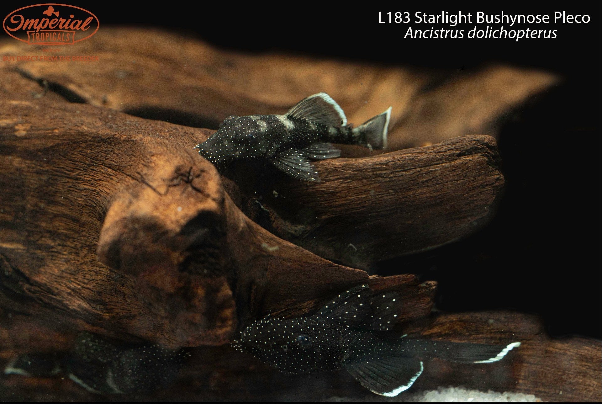 In their natural habitat within the middle and lower Rio Negro in Brazil, they feed on a variety of things such as insect larvae and algae. Their omnivorous diet translates to the home aquarium where to thrive, they should be fed a high quality and diverse diet consisting of both meaty and vegetable-based foods. Like with all plecos, wood should be provided so that they have a consistent spot to graze. Also mimicking their natural habitat, the L183 starlight bushynose pleco requires soft, acidic, heavily oxygenated, and very clean water to thrive. The aquarium should be furnished with plenty of small caves for the pleco to hide in and the more hiding spots provided, the more secure they will be which encourages them to hide less. These caves will be used as spawning sites if pairs form and are in good condition.