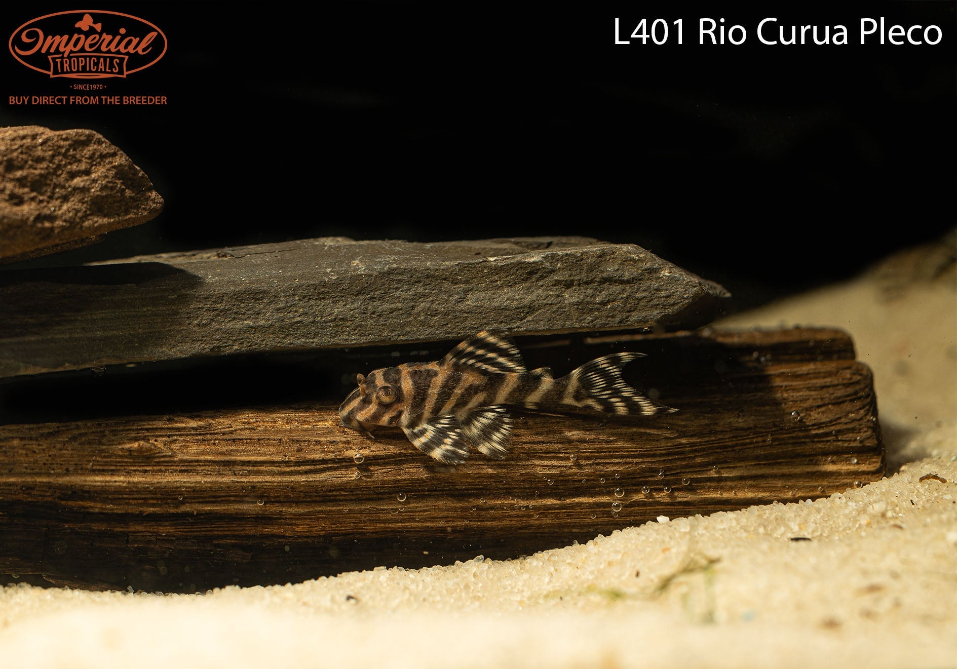 Remarks: The L401 Rio Curua Pleco is a beautiful Hypancistrus sp. has a striking black and white pattern. They look very similar to the L333 King Tiger Pleco and can be easily confused. In most cases the only way to distinguish the fish is by knowing the catch location. Provide these plecos with plenty of caves, driftwood, and rocks. A high protein diet is preferred.