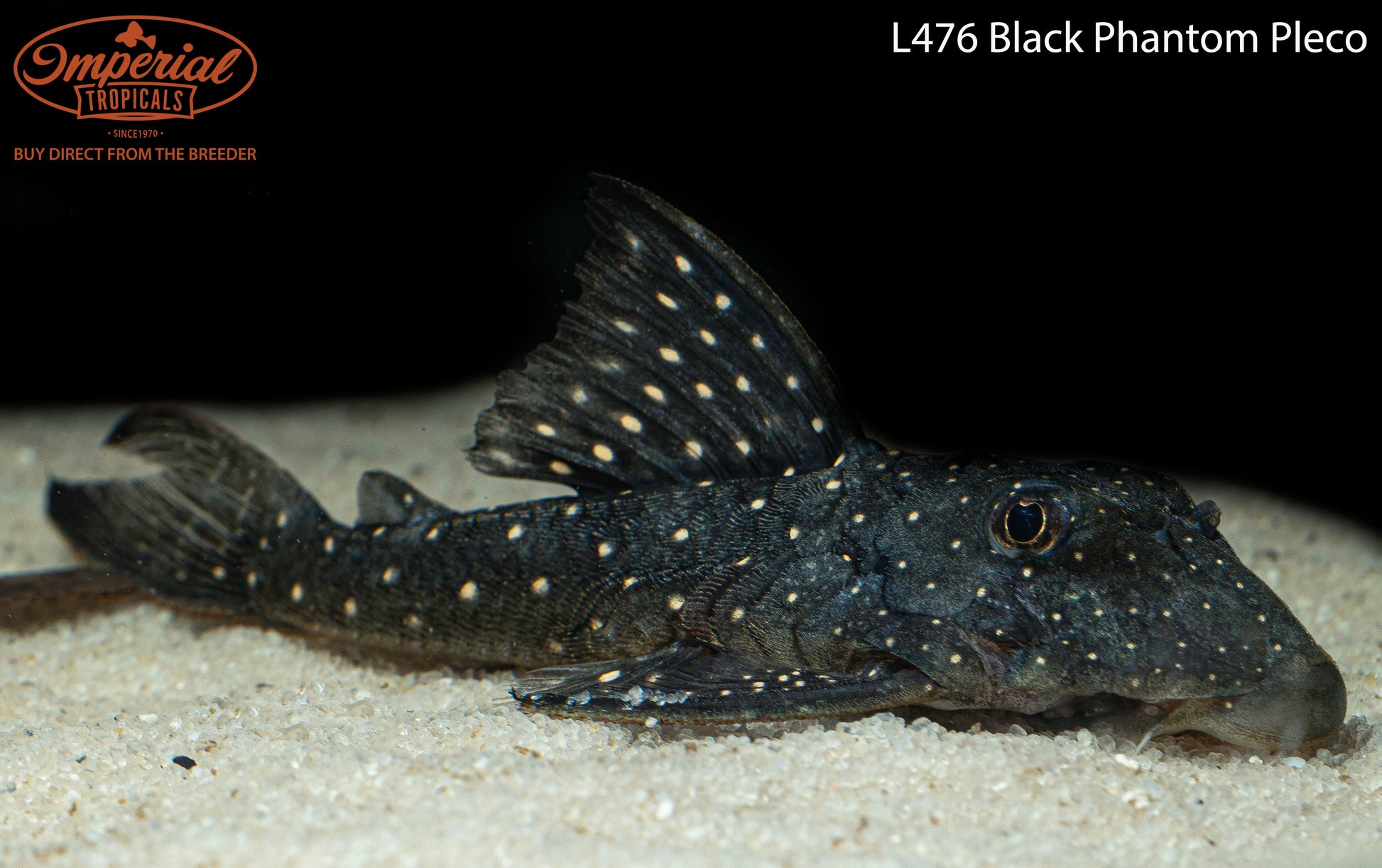 Remarks: The L476 Black Phantom Pleco is fairly new to the hobby and rare so very little is known about it. Their bodies are a black color and mottled in spots that are white to yellow in coloration. Something that sets them apart from the other phantom plecos outside of their dark color is that they prefer more protein heavy foods instead of a more herbivorous diet.