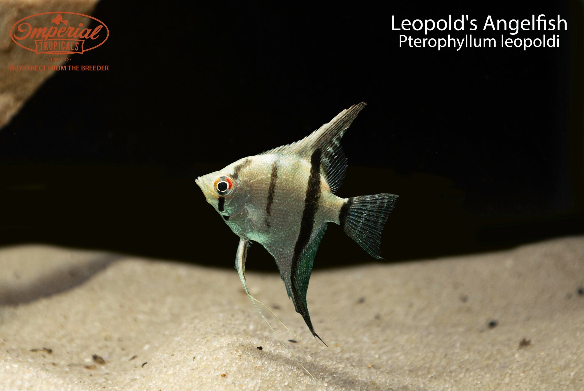 While this species is intolerant in regards to high pH or hardness, it is more tolerant in regards to required space compared to its relatives with 30 gallons being enough for a pair. This is due to the fact that the Leopold's angelfish is the smallest of the Pterophyllum genus, typically growing only to about four inches in length and six inches in height. Being smaller makes it an even better candidate for a peaceful South American tank compared to scalare or altum. Despite all these great qualities, the Leopold's angelfish is rarely imported or bred in captivity making it very uncommon in the hobby.