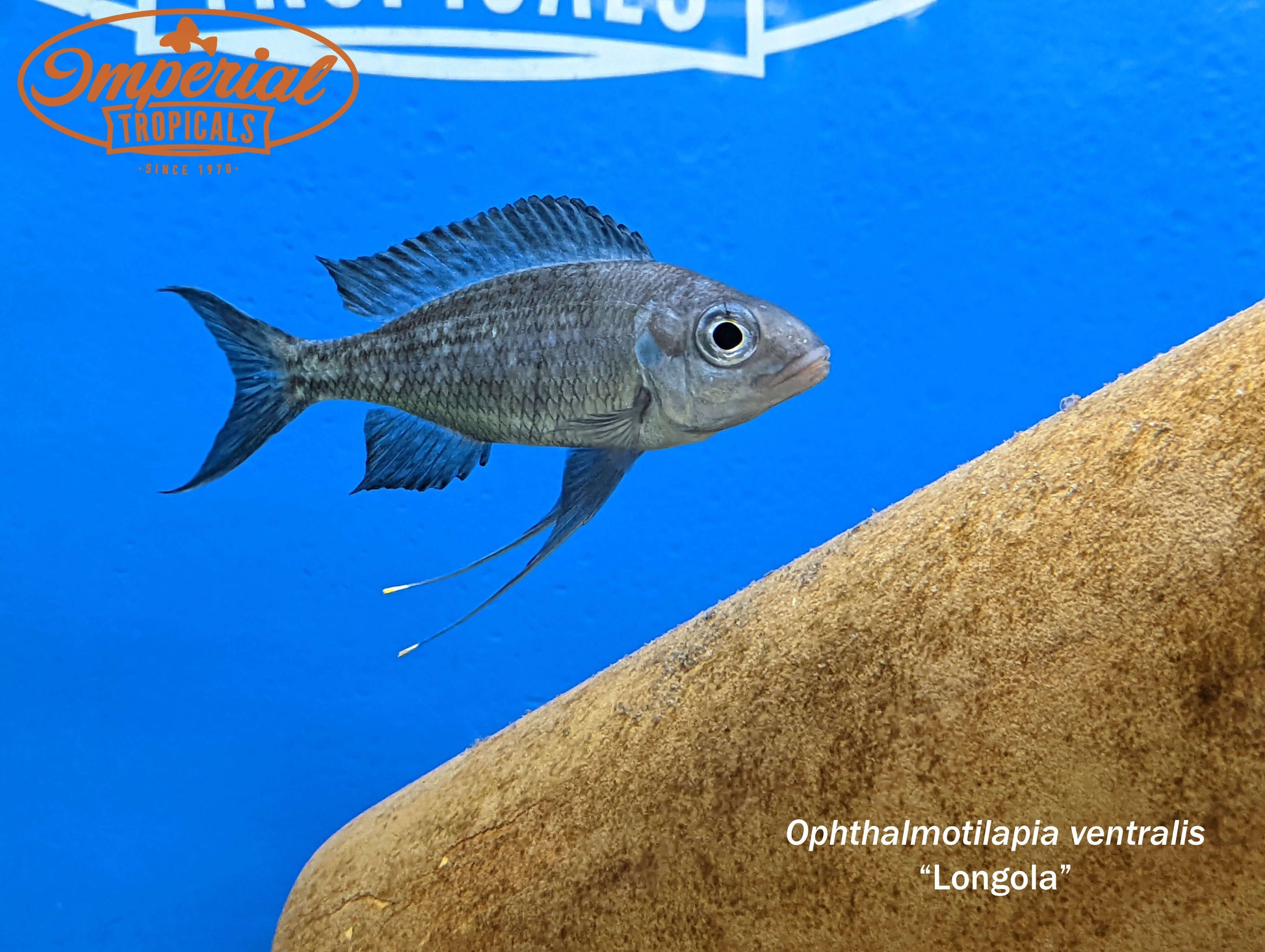 Remarks: Ophthalmotilapia ventralis are part of a group of Tanganyikan cichlids called Featherfins. Males have elaborate pelvic fins that extend through the anal fin and end in bright egg spots. This species is fairly active and requires a large space for swimming, both in the open and among rock piles.