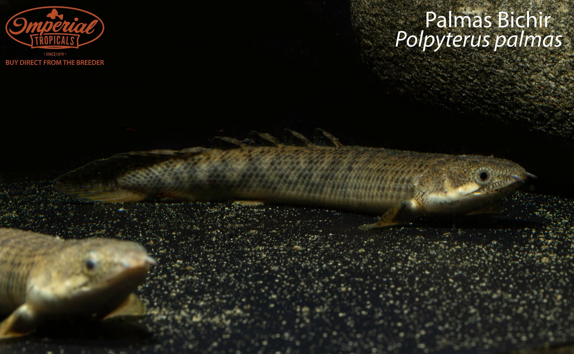 Bichirs are true oddball fish in that they almost appear more like amphibians than fish with their fins commonly used like legs to scoot along the ground, primitive lungs allowing them to intake surface oxygen, and even having feathery gills when young similar to those of larval salamanders or newts. These adaptations likely evolved due to their native habitats of streams and rivers in Africa occasionally drying up and leaving them to crawl to a new body of water. While interesting, these behaviors can be troublesome for fishkeepers as it makes them escape artists requiring heavy, tight fitting lids. Bichirs are also curious and will try to swallow anything they can fit in their mouth so nothing that is small enough to be swallowed should be in their tanks. Because of this and their sensitive bellies, they are best kept on sand as a substrate as some gravel is small enough to swallowed and can scratch them.