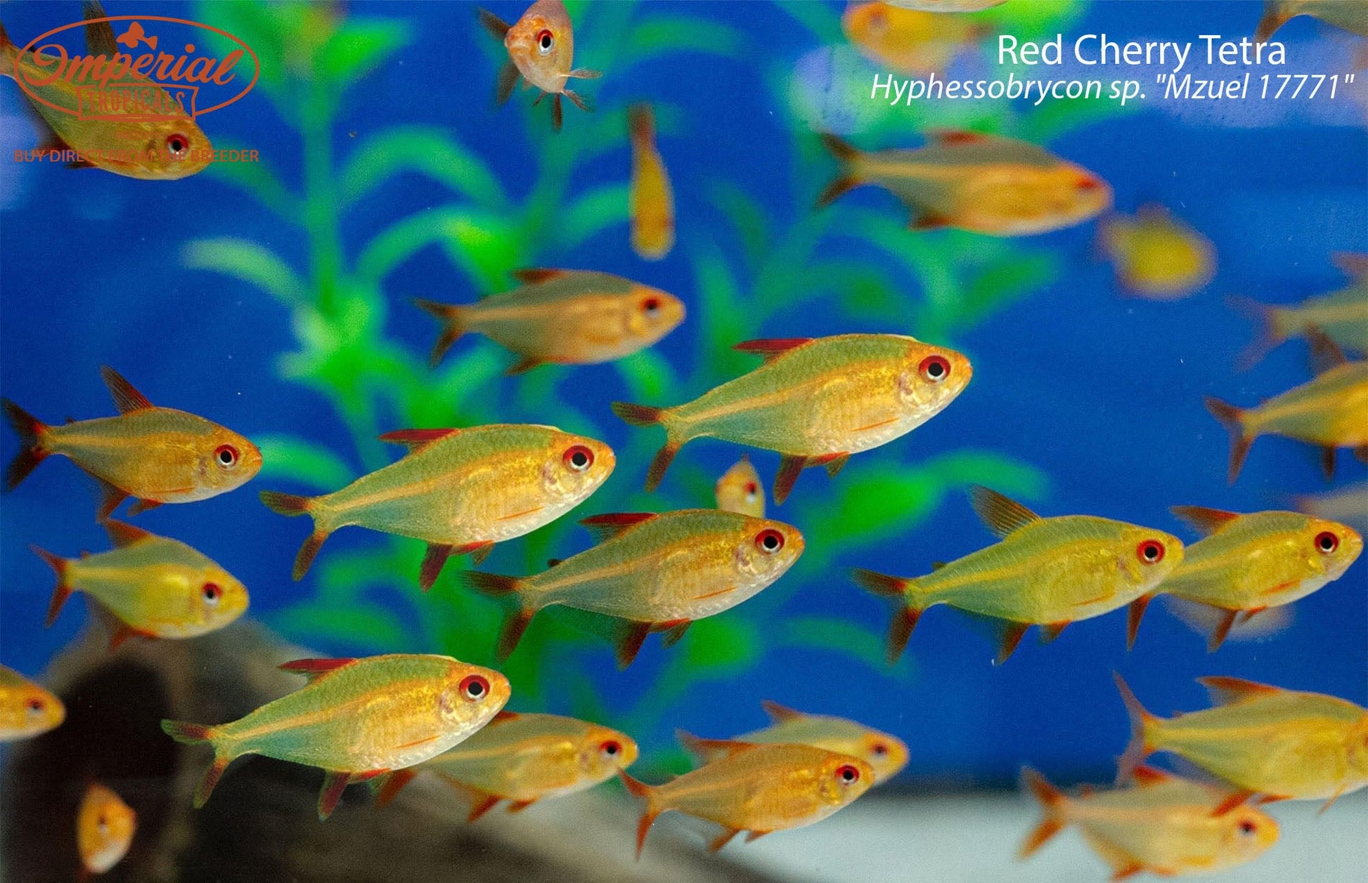 Remarks: Red cherry tetras are one of the many new tetras from Brazil that have only been in the hobby for a few years. As they are such a new species, they have yet to be formally described so their current scientific name of Hyphessobrycon sp. "Mzuel 17771" is only a placeholder for now. Not much is known about these fish other than they inhabit warm, acidic, blackwater streams where their bright red and orange colors aid them in blending in to the reddish-brown water. These areas have plenty of leaf litter and fallen branches and simulating these conditions in captivity will result in getting the most out of these beautiful tetras as you watch them spar and display for each other. You may even be lucky enough to have them begin spawning for you, though they are not the easiest species to breed.