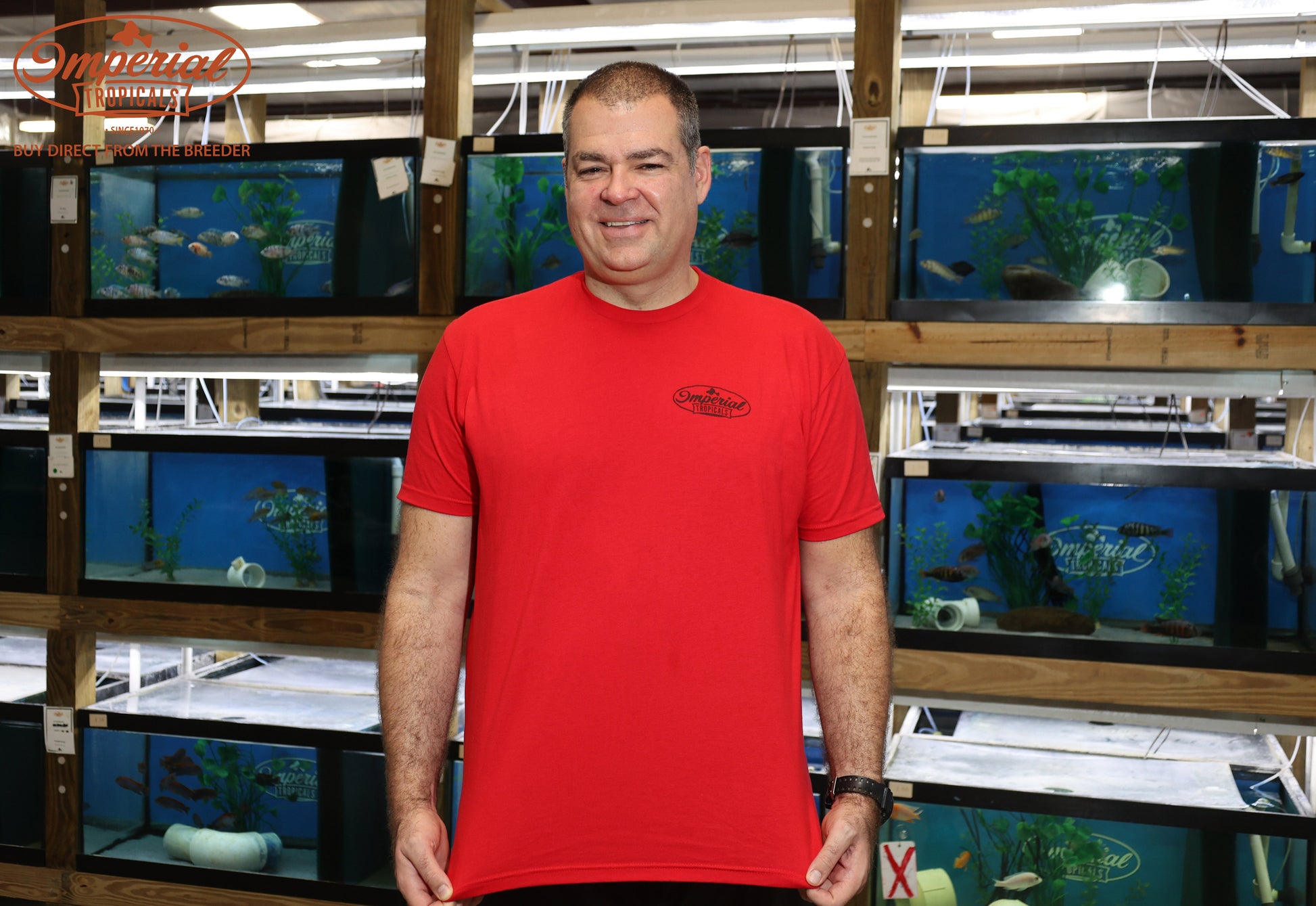 Durable Jerzees Dri-Power Active T-Shirts perfect for fish room work or to show off that you buy from Imperial Tropicals. Small logo on the top left corner on the front left and large logo with phrase on the back.