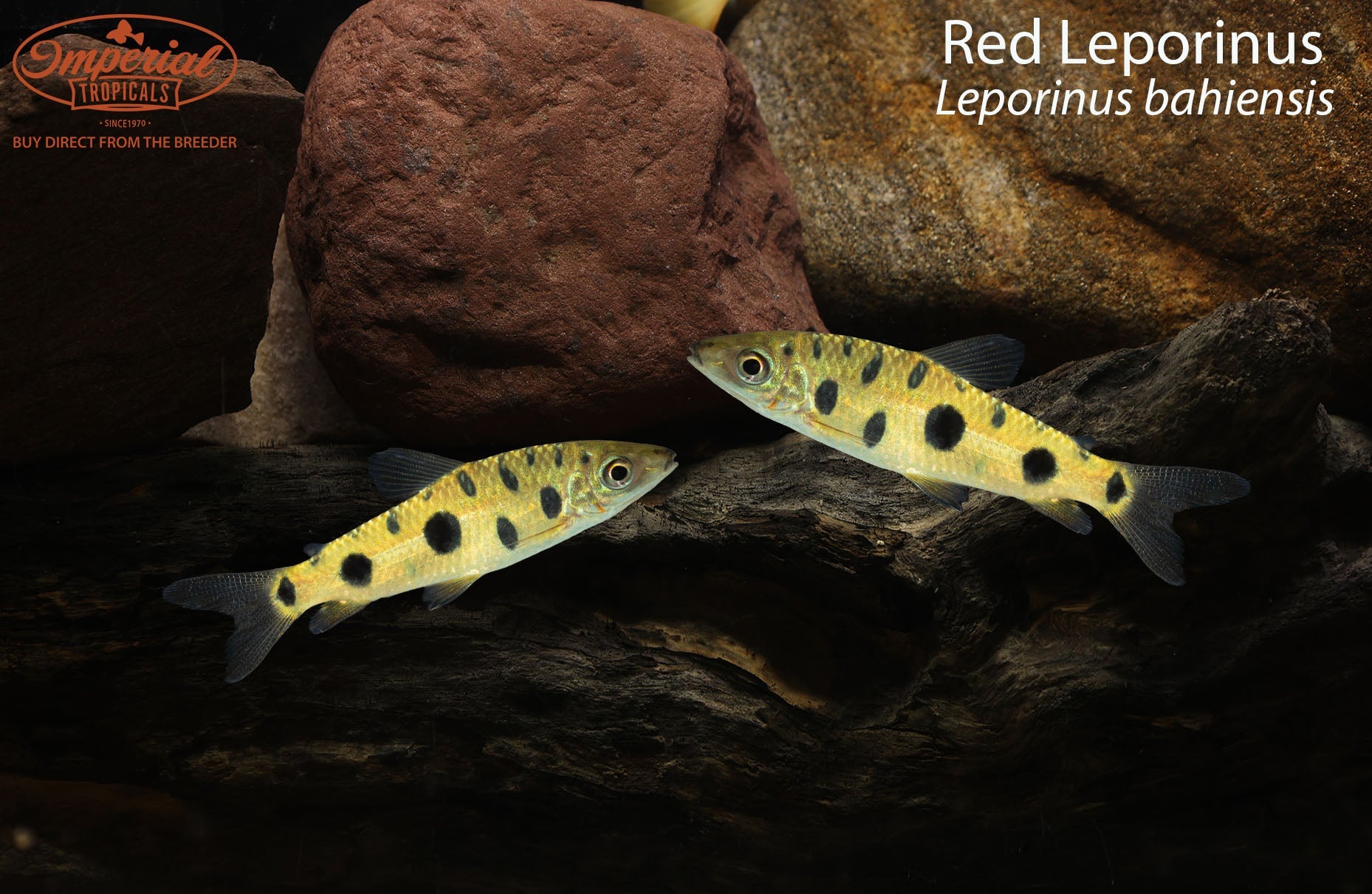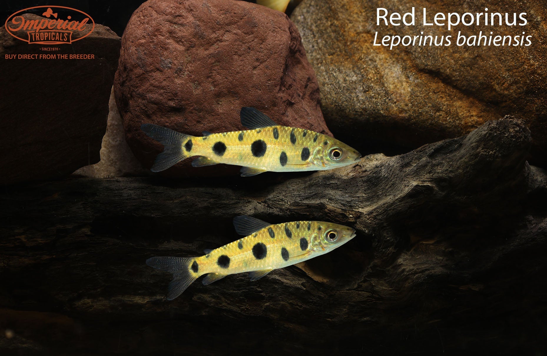 Red leporinus have silver or gold bodies with three black spots along their lateral line, a larger one under the dorsal fin, a mid-sized one under the adipose fin, and then the smallest one right at the base of the caudal fin. When in the right conditions, their fins are a nice reddish-orange color that stands out nicely against a black background.