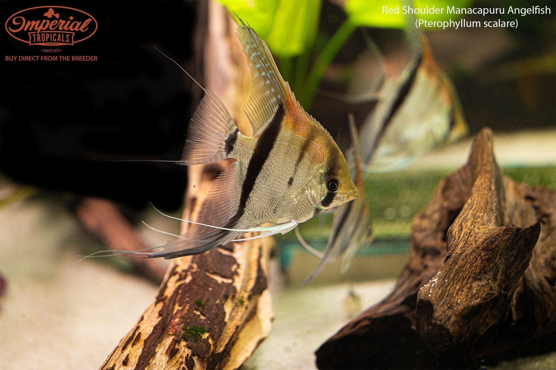 Red Shoulder Manacapuru Angelfish are easy-going cichlids that do well in almost any community tank. They are peaceful enough to be kept with most tetras and other peaceful cichlids as long as they can't fit in their mouths.