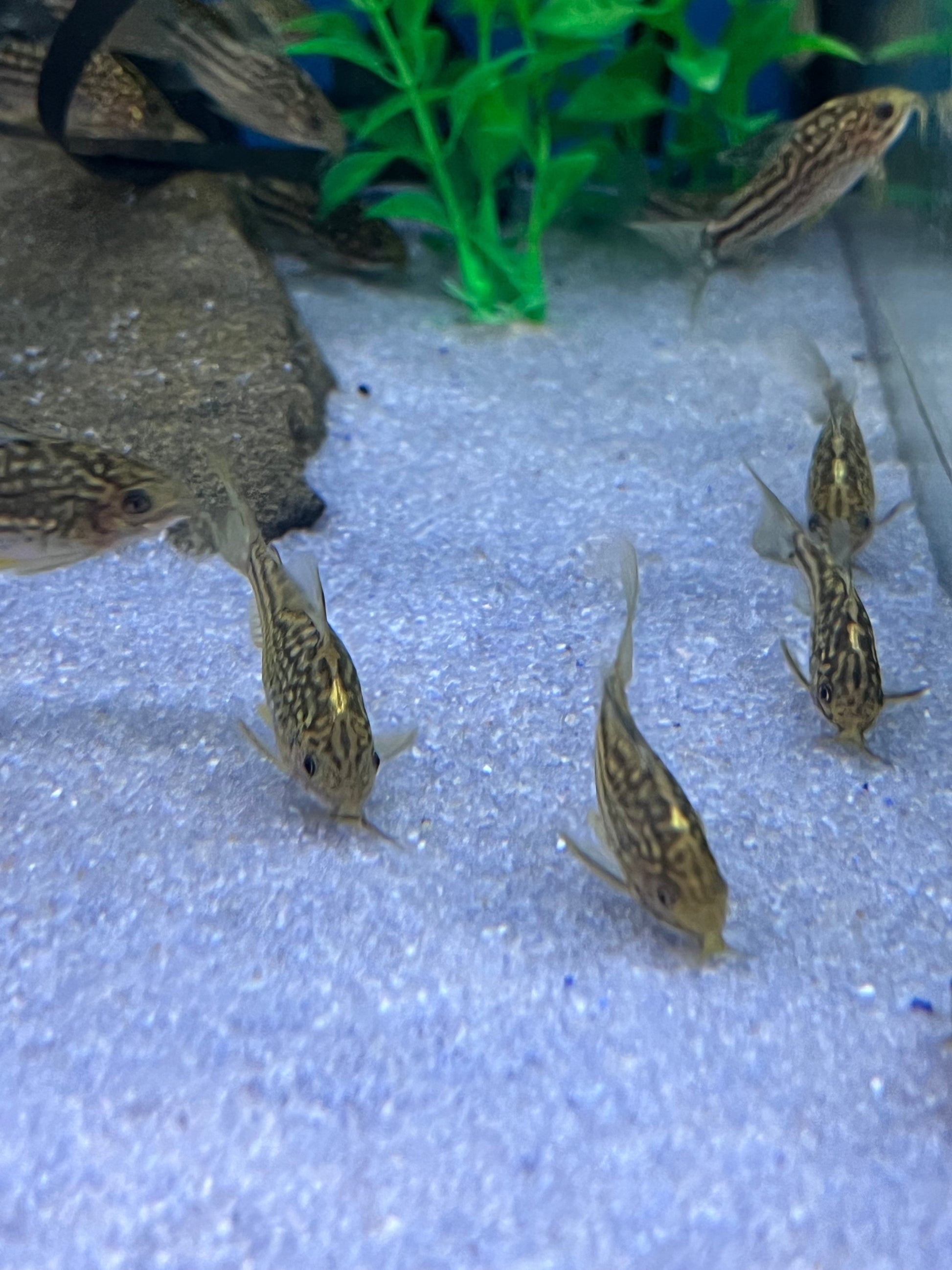 Corydoradinae are small, peaceful catfish that are active shoalers and will stay near conspecifics, making for a lovely sight. They feed by searching through sand with their barbels, making such a substrate necessary for their long-term health. Gravel substrates tend to be abrasive and damage the barbels, leading to infections and an inability to find food.