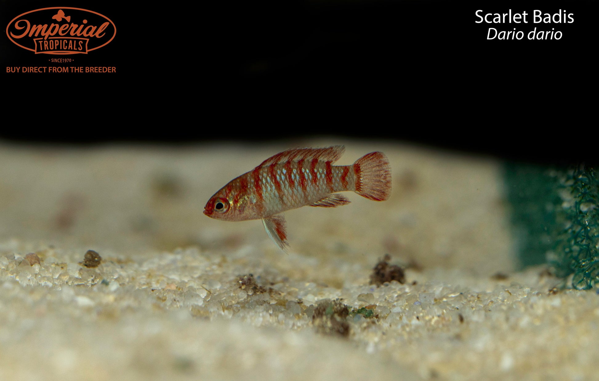 Care should also be taken when choosing tankmates as most fish will either attempt to eat the scarlet badis or will frighten it as they are very timid. Most do best when kept as pairs in a species-only tank. One can be kept in a 5 gallon, while a pair or more will require a 10 gallon or larger. Due to their need for live foods and cryptic nature, they are not a good beginner fish. However, for the more experienced keeper, they are well worth the effort once they begin to show their intense colors and inquisitive personalities.