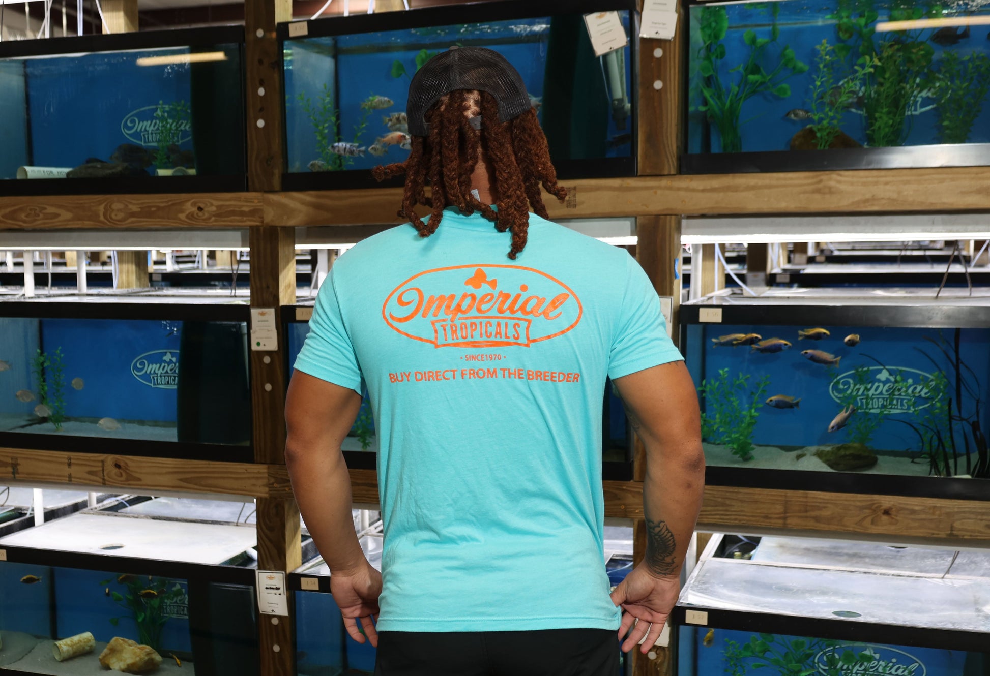 Durable Jerzees Dri-Power Active T-Shirts perfect for fish room work or to show off that you buy from Imperial Tropicals. Small logo on the top left corner on the front left and large logo with phrase on the back.