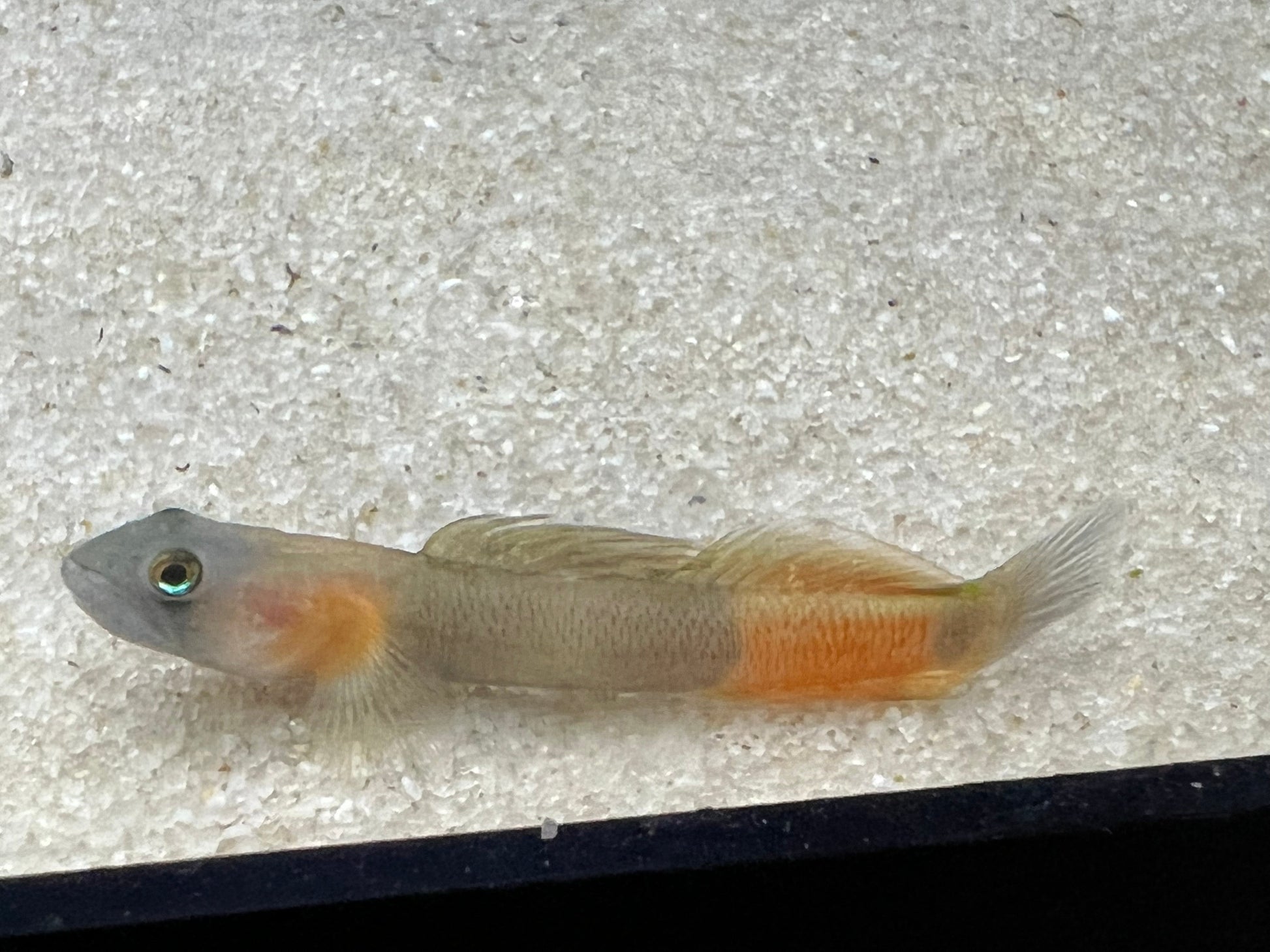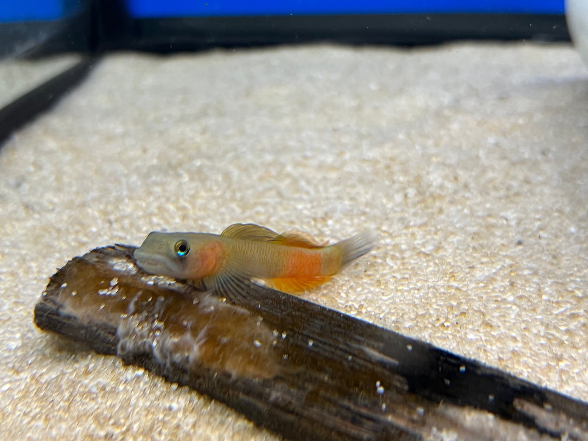 Remarks: The teardrop goby is a larger hillstream species with bright blue eyes and two broad orange bands behind their gill plate and just before the tail. They have care very similar to gobies in the genus Stiphodon in that they require water conditions similar to the rapids they are native to with very clean, clear, oxygen-rich, and fast flowing water. Where they differ, however, is that the teardrop goby comes from more shaded areas with less algae causing them to be more carnivorous. In the aquarium, they typically will need to be fed frozen or live foods but some will learn to eat prepared foods. Frequently they develop very outgoing personalities and become very personable.