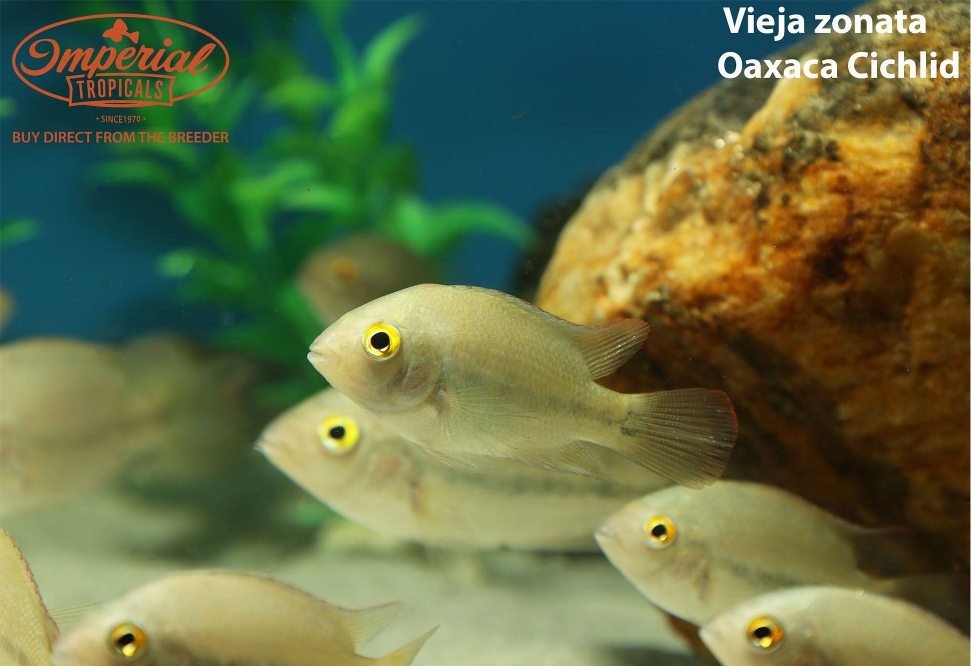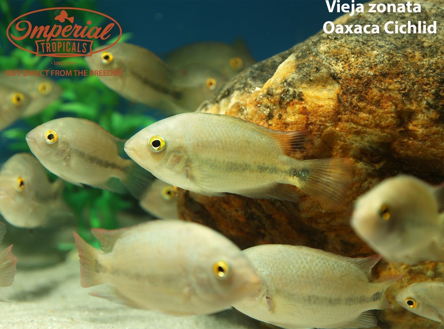Remarks: Vieja zonata are a moderately aggressive robust cichlid. In nature they can be found in rivers through out Mexico. We recommend keeping them with fish of a similar temperament from central America.