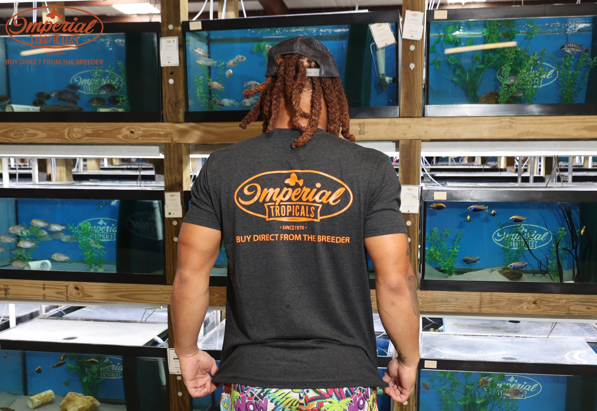 Durable Jerzees Dri-Power Active T-Shirts perfect for fish room work or to show off that you buy from Imperial Tropicals. Small logo on the top left corner on the front left and large logo with phrase on the back.