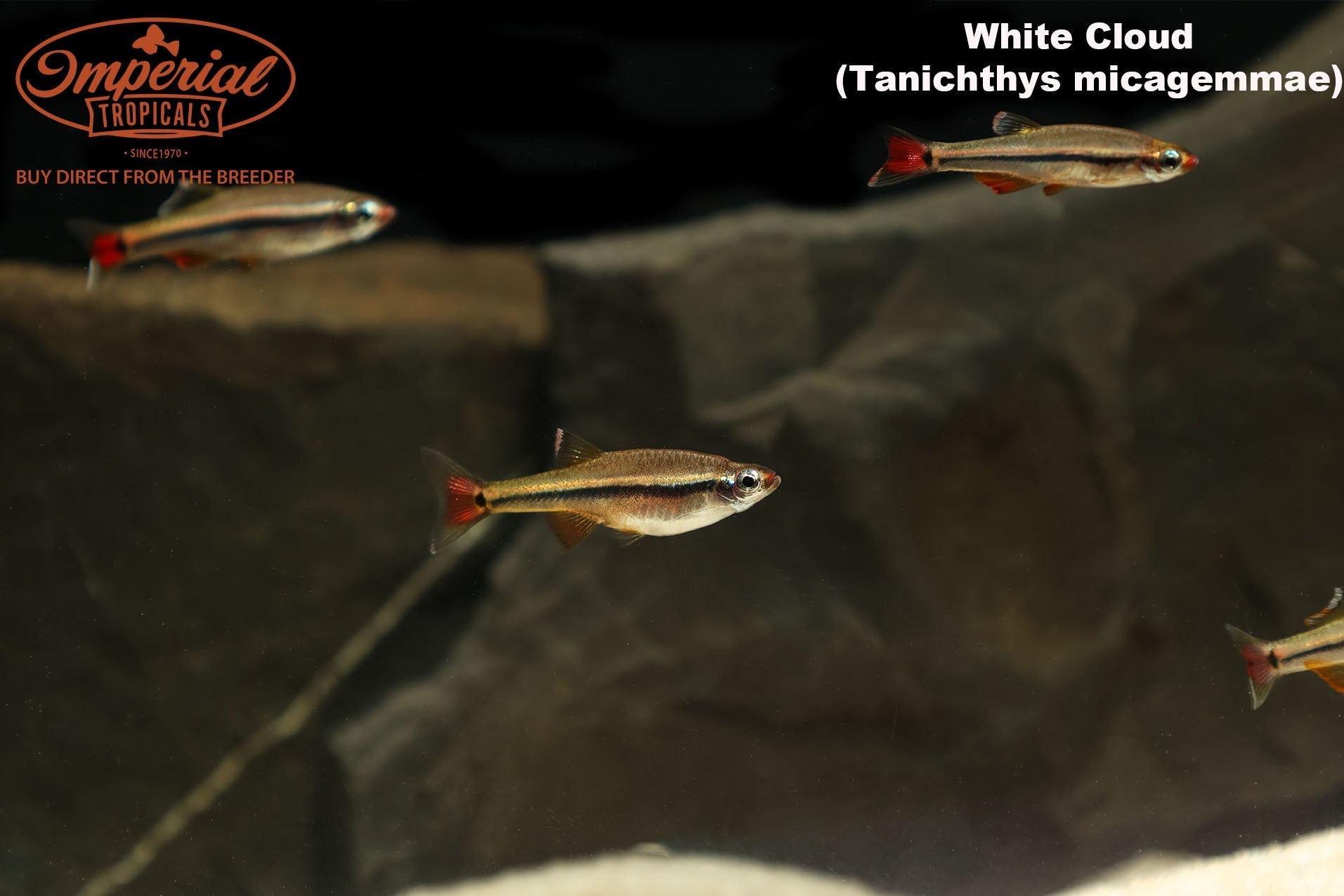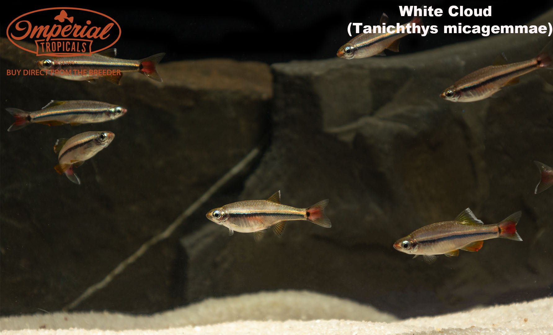 Remarks: Vietnamese Cardinal Minnows, or royal white clouds, are active cold-water species that can tolerate unheated tanks and reproduces rather easily. In the wild, they inhabit fast-flowing, shallow streams. This is a different species from the common Tanichthys albonubes. As they are a shoaling fish by nature, at least 10 specimens should be purchased.