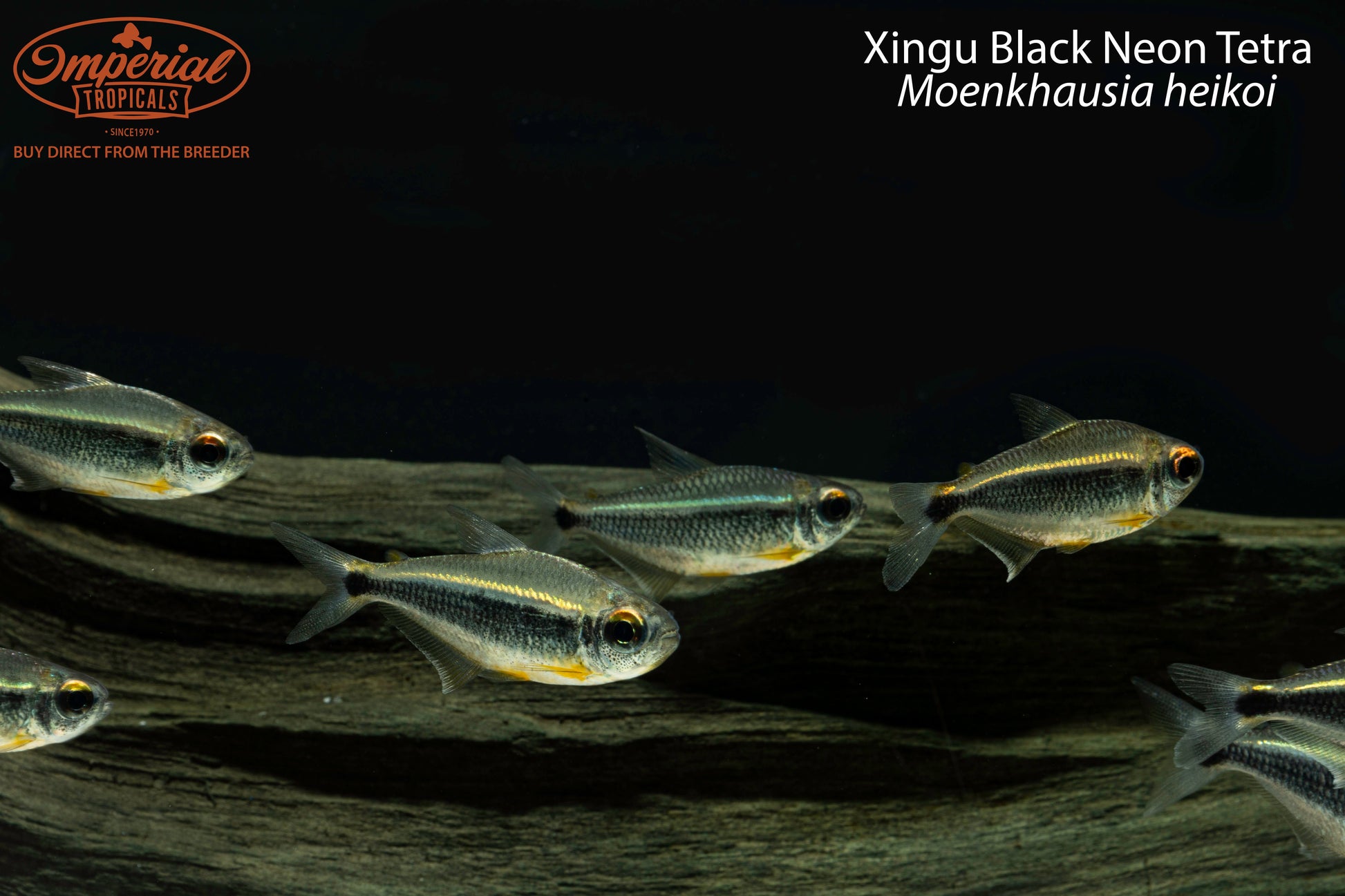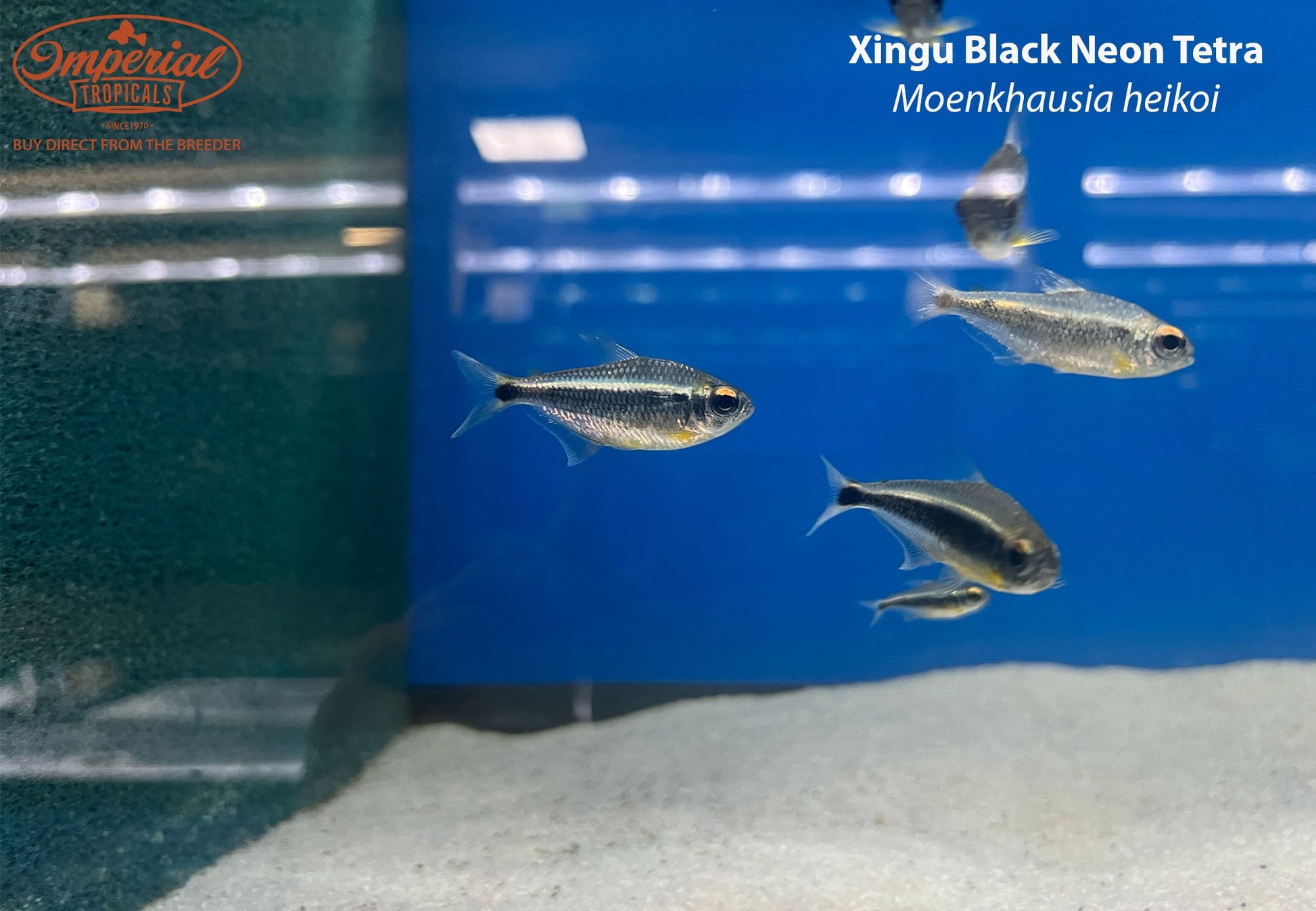 As these rare tetras come from areas of high flow, it is important that they are provided plenty of aeration in the aquarium to remain healthy. Soft, clean, acidic water is also necessary. Like most tetras, Xingu black neon tetras are highly social and will become stressed if not maintained in a group of at least 6 fish with 10 or more being ideal. The larger the school, the more secure they will feel making them more likely to venture out where you can view them actively darting about the tank.